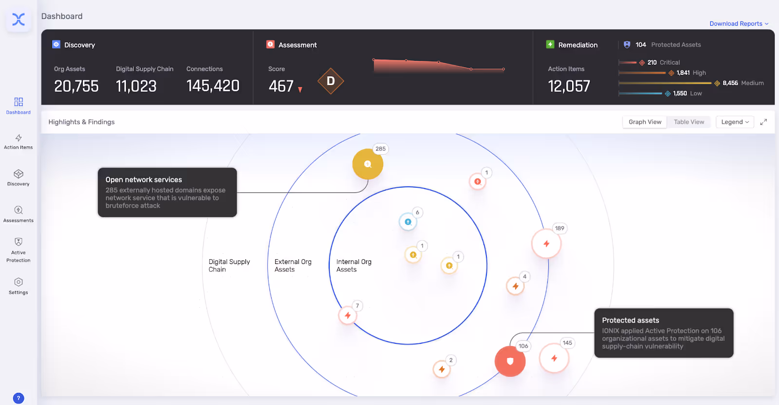 Ionix began as an EASM product but evolved into a comprehensive CTEM offering. It continuously discovers, analyzes, and manages the entire external attack surface, including vendor-managed assets and the digital supply chain. Its "Connective Intelligence" offers visibility into all internet-facing assets using multi-layered prioritization that checks exploitability to create consolidated, actionable remediation workflows.