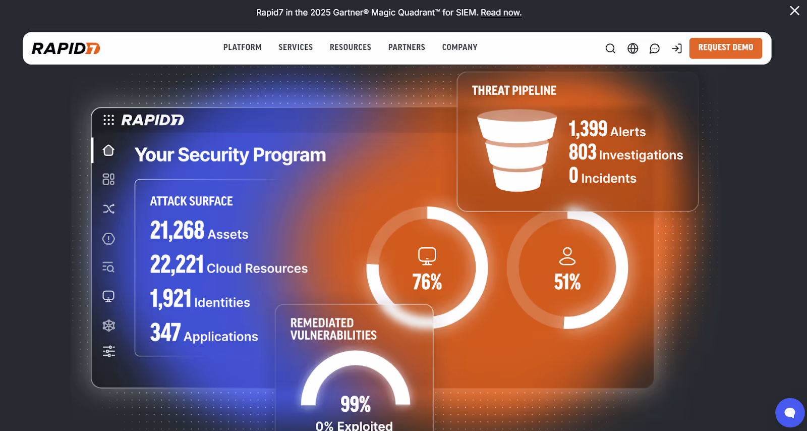 Rapid7’s Insight platform connects vulnerability, cloud, and threat intelligence data into a CTEM-aligned workflow. InsightVM provides live vulnerability analytics, while InsightCloudSec extends visibility into misconfigurations and cloud exposures. Combined with real-time exploit intelligence from Threat Command, it supports complete CTEM cycles, from discovery to mobilization, within a single interface.